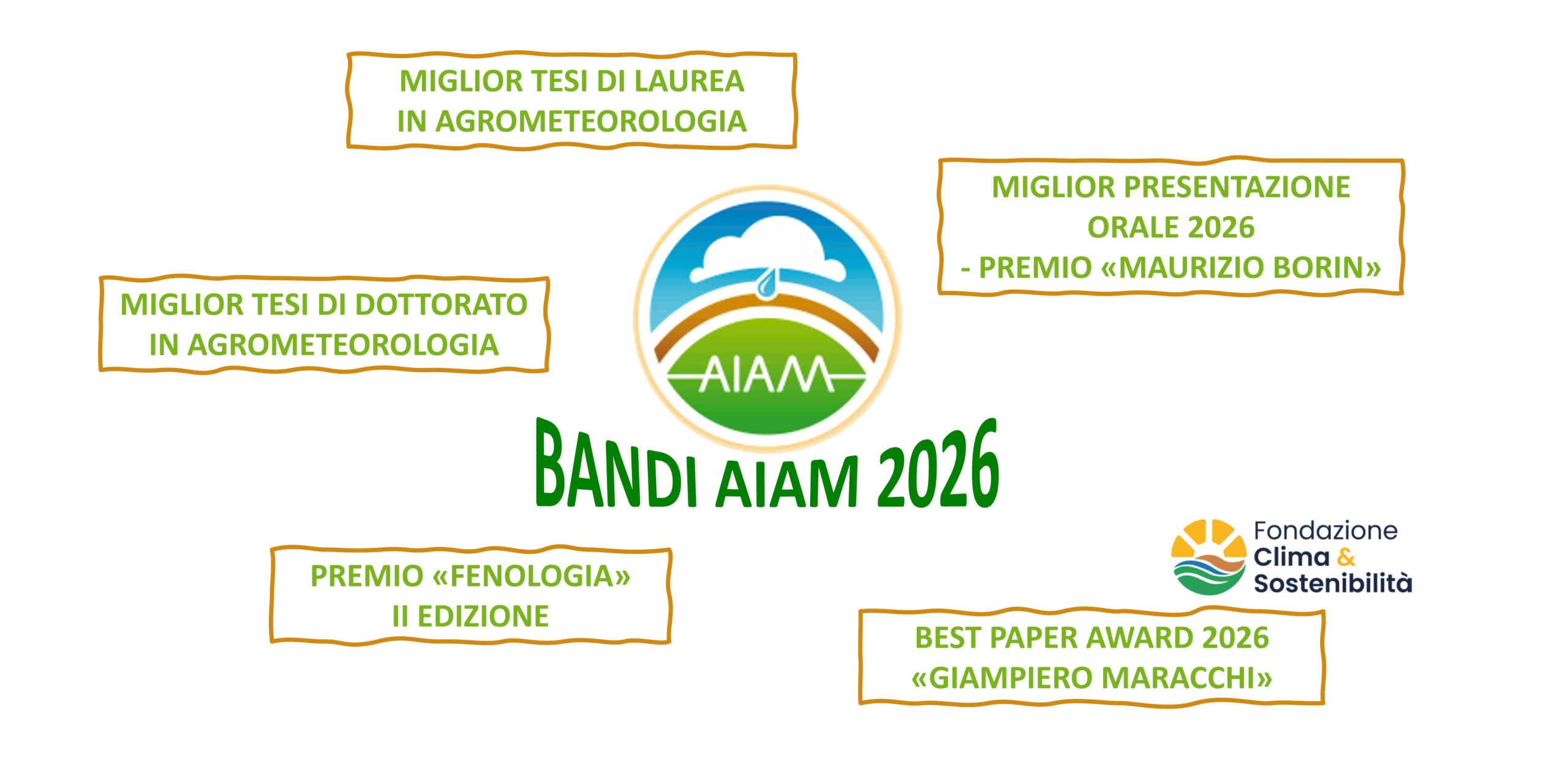 Grazie alla collaborazione con la Fondazione Clima & Sostenibilitá viene badito il premio Best paper award 2026 – “Giampiero Maracchi” (vedi Bando Best paper), un riconoscimento per i migliori contributi di ricerca in discipline agrometeorologiche pubblicati nel corso del 2025.